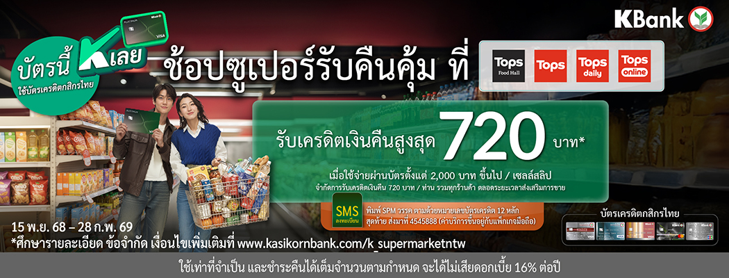 ช้อปสบายใจ คุ้มทุกตะกร้า รับเครดิตเงินคืนสูงสุด 450 บาท* เมื่อมียอดใช้จ่ายที่ซูเปอร์มาร์เก็ตและไฮเปอร์มาร์เก็ต ที่ร่วมรายการตามเงื่อนไขที่กำหนด รับเครดิตเงินคืน 50 บาท เมื่อมียอดใช้จ่ายสะสม 4,000 – 9,999 บาทต่อเดือน หรือ รับเครดิตเงินคืน 150 บาท เมื่อมียอดใช้จ่ายสะสม 10,000 บาทขึ้นไปต่อเดือน …