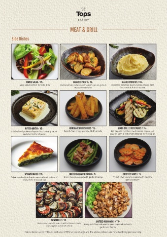 Potato Gratin / 95.- HomeMADE French Fries / 75.- Mixed Grilled Vegetables / 75.-