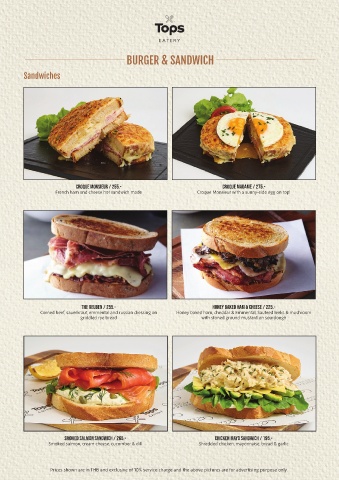 The Reuben / 255.- Honey Baked Ham & Cheese / 225.-