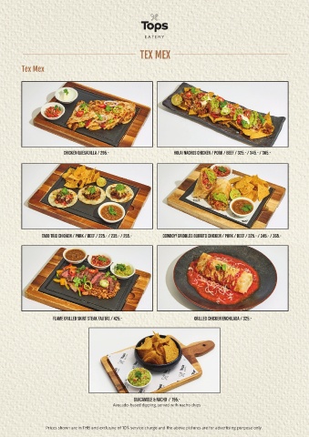 Taco Trio CHICKEN / PORK / BEEF / 225.- / 235.- / 255.- Cowboy! Griddled Burrito CHICKEN / PORK / BEEF / 325.- / 345.- / 365.-