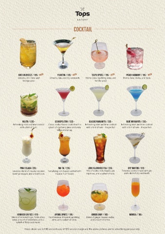 Pina Colada/ 235.- Mai Tai / 235.- Long Island Iced Tea / 235.- Dry Martini / 310.-