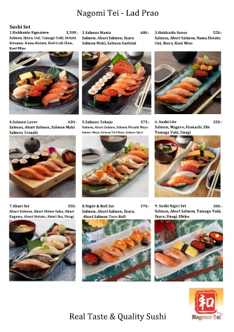 7.Aburi Set 350.- 8.Nigiri & Roll Set 370.- 9. Sushi Nigiri Set 300.-