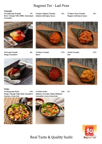 58.Unagi Temaki 85.- 59.Ikura Temaki 175.- 60.Uni Temaki 175.-