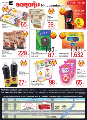 *รายการสินคาและราคาโปรโมชั่นในโบรชัวรนี้ เฉพาะท็อปส มารเก็ต สาขาเซ็นทรัล อยุธยาเทานั้น **ขอสงวนสิทธิ์ในการเปลี่ยนแปลงรายการสินคาและราคาที่ปรากฎในสิ่งพิมพโดยไมตองแจงใหทราบลวงหนา