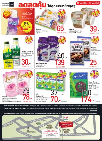 *รายการสินคาและราคาโปรโมชั่นในโบรชัวรนี้ เฉพาะท็อปส มารเก็ต สาขาเซ็นทรัล โคราชเทานั้น **ขอสงวนสิทธิ์ในการเปลี่ยนแปลงรายการสินคาและราคาที่ปรากฎในสิ่งพิมพโดยไมตองแจงใหทราบลวงหนา